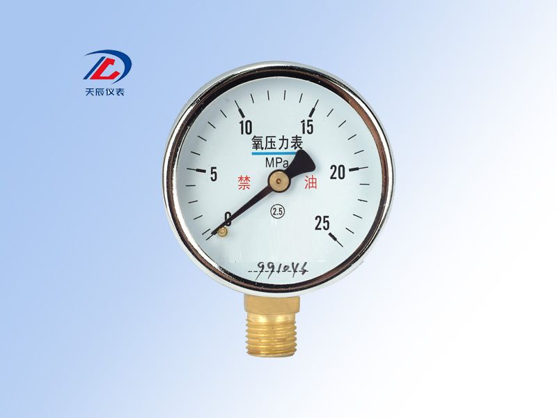 河南天辰測控儀表自主研發(fā)的氧氣壓力表儀表適用測量氧氣介質(zhì)的壓力。嚴禁接觸油脂類物質(zhì)。...